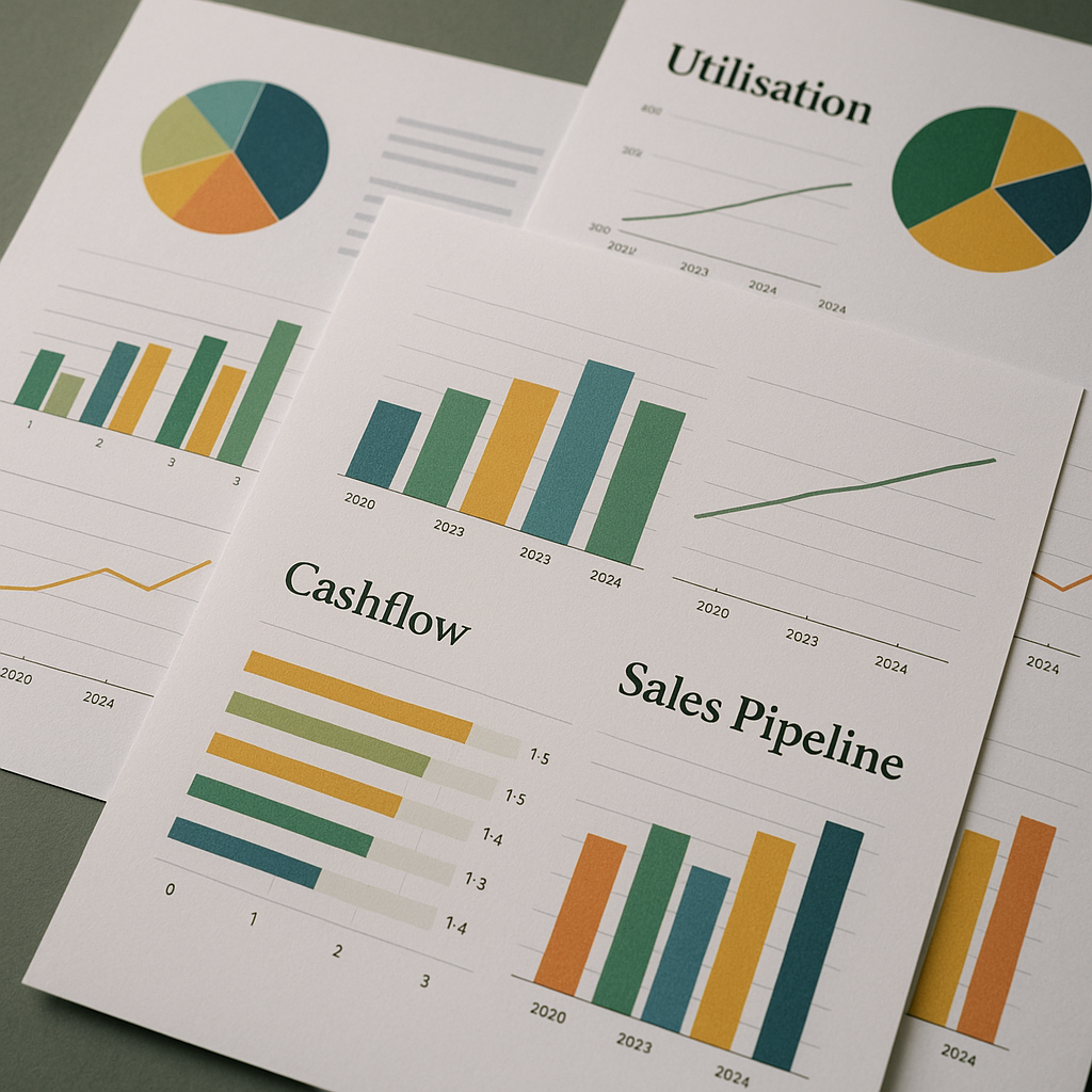 3 Critical points checked regularly to plot the health of the sector across New Business, Workload & Cashflow.